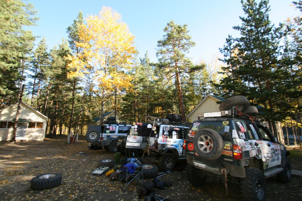 На второй день проснувшись очень рано первым делом залез в горячую ванну пока народ не набежал и расслабился. После такого отдыха никуда дальше ехать не хочет, а вылезать из воды тем более. Но сердечко оно одно и поэтому 15 минут прогревания и на выход. Все как обычно дрыхнут. Поэтому пинаю балду. Помаленьку народ просыпается и выползает из домиков на улицу. Начинается неспешная подготовка к преодолению бродов и всяких говномесных мест. Шмурдяк выбрасывается из машин на улицу. Народ местный толпится, для них это хоть какое-то развлечение.