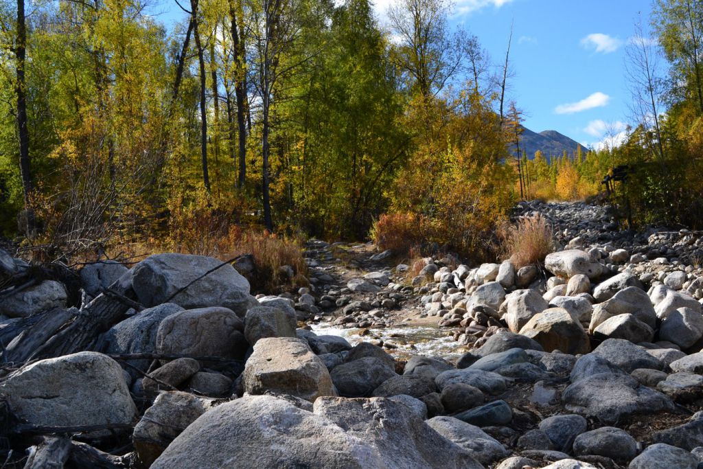 Пересекаем долину и уходим снова в горы пересекая многочисленные горные речки. Сейчас они все безмятежно спокойны но в полноводье их мощи можно позавидовать. Достаточно только посмотреть на те камушки которые они перемещаю.