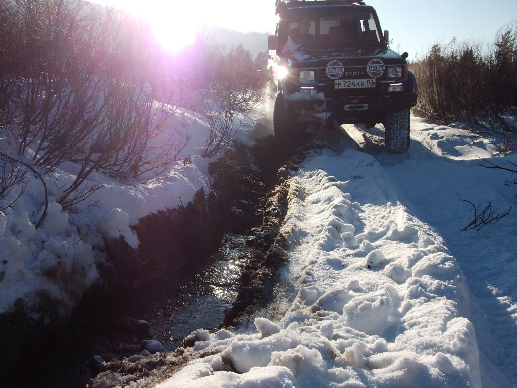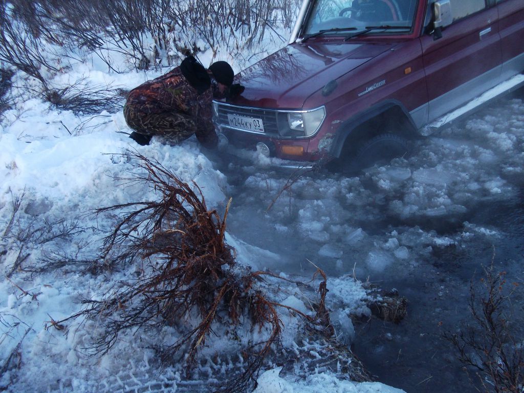 По калтусу проехал немного, с застреваниями. Дальше всё банально- не хватило времени и пошёл снег, неохота было ковыряться с лебёдкой, повернул обратно. Ты до Кики таки не доехал? пешком не ходил, можно ли прямо до реки доехать?