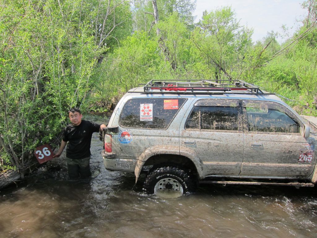 Без особых проблем покупались в речке и взяли 36. Все четыре колеса в воде.