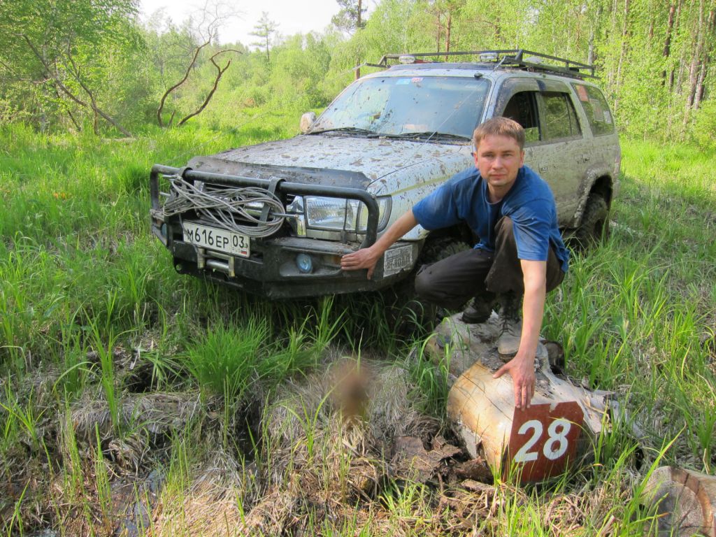 рвем   дальше.  46-тая, опять никого не было ещё, сделали гать через канаву,   взяли без усилий,  но в подъём подпалили сцепление. Принято  решение:   экипаж – питаться, авто – стыть и  отдыхать. Кормя себя курицей, а    комаров  собой, лениво размышляли о разнообразии пищевых цепочек в   живой природе. Хватит  лирики и снова – вперед. 47 - мая, опять не   хватает размаха крыльев, помогает  ручная лебёдка, точка покорена.