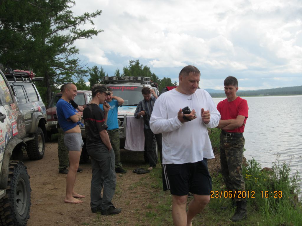 Подъезжаем к Улан-Бурге. Воды по щиколотку, но джимник Толстого закапывается в песок посреди реки. Вылазит на лебедке. Остальные сдуваются в ноль и переходят аки посуху. Почти все)