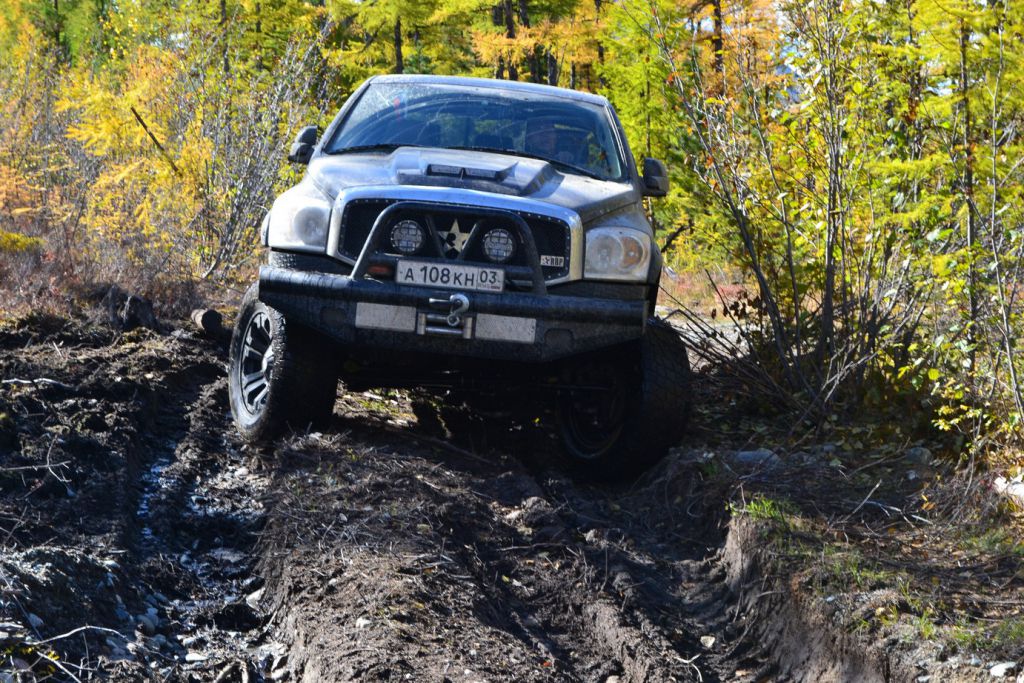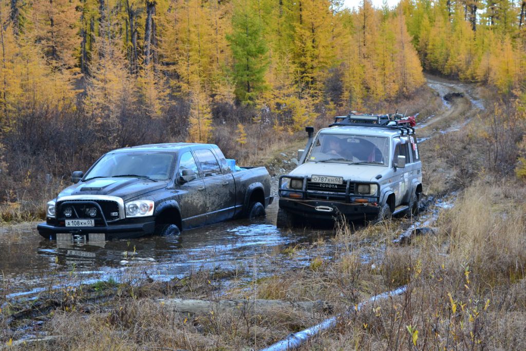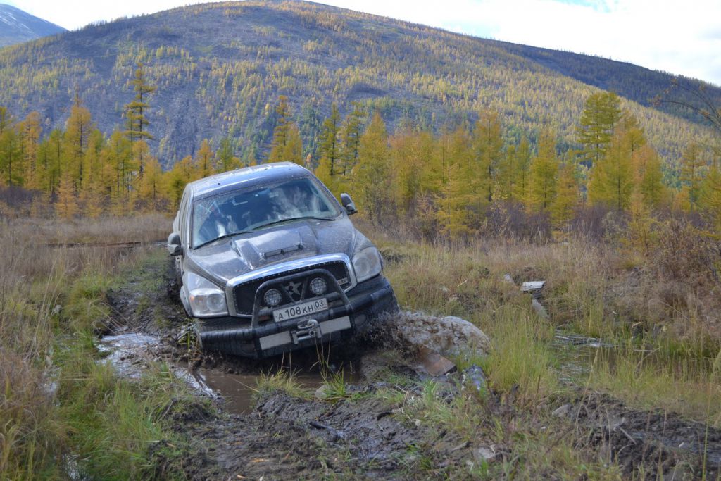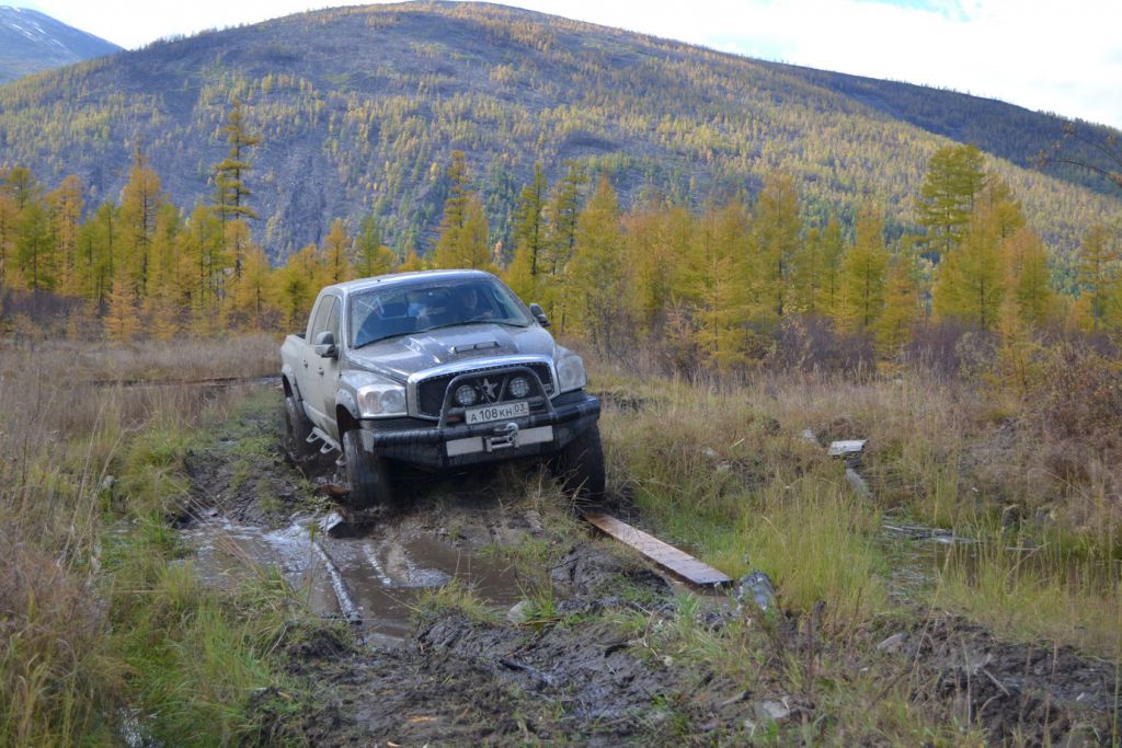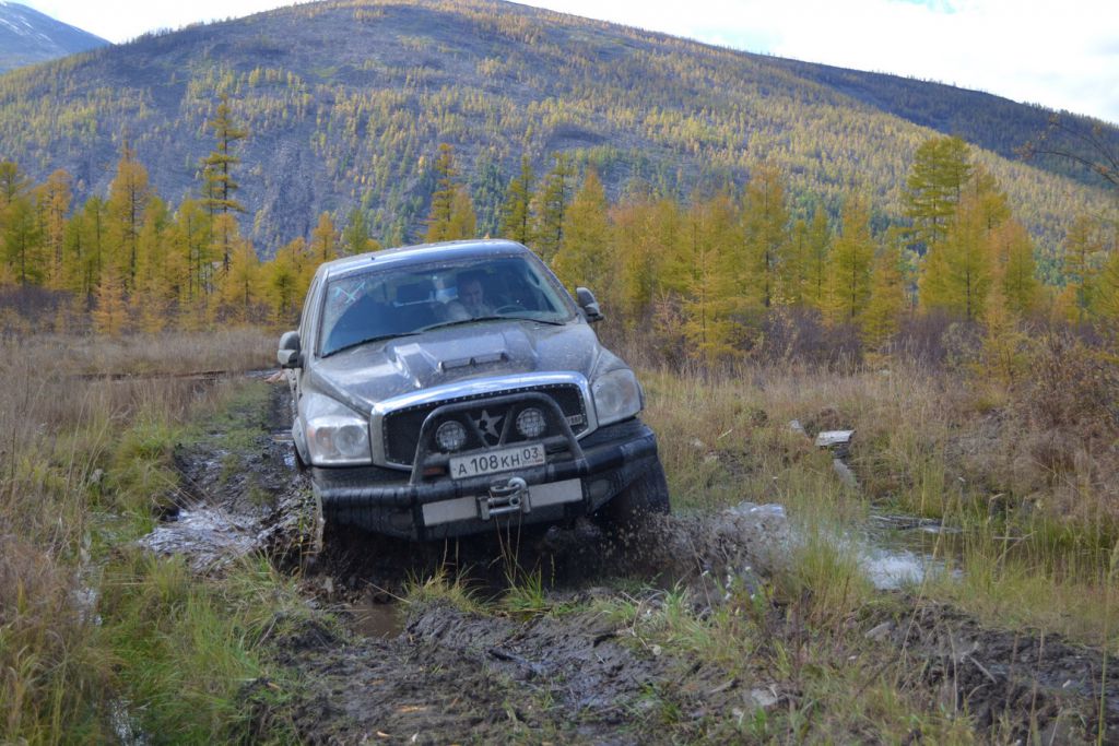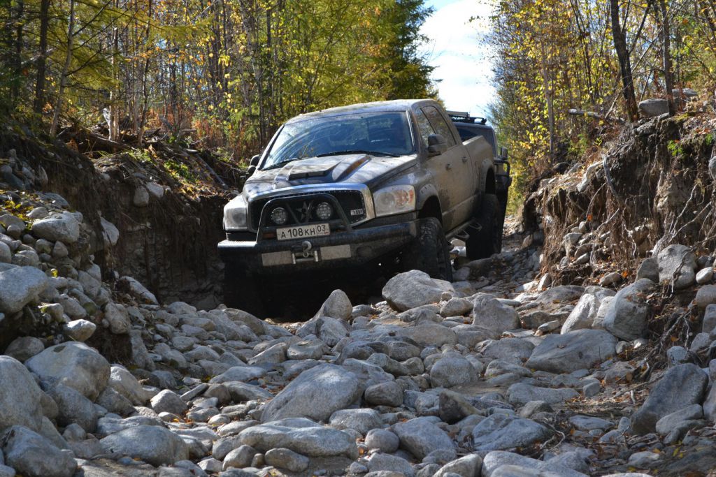 В эфире снова какая та котовасия. Толстый наткнулся на одиноко передвигающеюся машины мирно забегемотившеюся на дороге. В первом приближении ему даже не удалось определить марку машины. Только и услышали, что масса машины-бегемота как раз по мне и что она с кузовком. Издевок и юмора было много. Доберемся разберемся что к чему там. Нас то много. Выдернем. Веселимся и едем. Добираемся до точки где Толстый словил бегемота и млин млинский стоит корыто размеров с локомотив. По началу подумали, что тундра. Но чем ближе тем веселье становилось меньше. В кустах притаился всем бегемотам бегемот. Додж Рэм. Магента рисанулся и вытянул его в одну каску, пусть завидует что его малыш дернул. Все пошли пялятся на это чудо. Колесья гдето на 37с литьем на 20. Весь в обвесах сделанных на заказ. Это корытце прошло не слабый тюнинг.