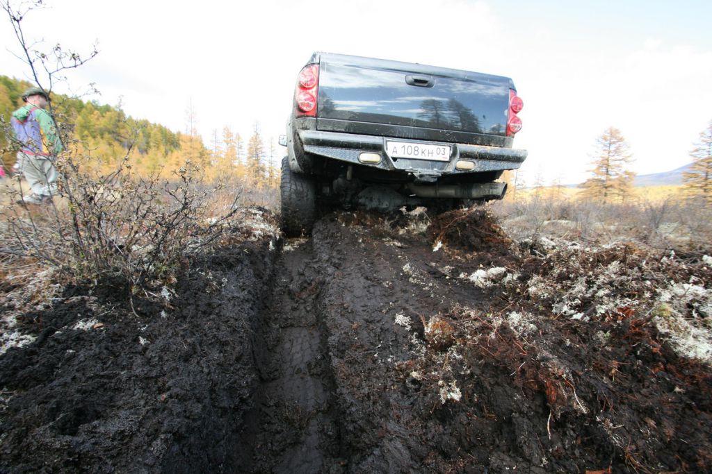 Про Магенту на время все забыли. Смотрим как ледокол Арктика начинает и заканчивает свой путь. Выковыриваем Эскудика и дальше. По мне так мы больше Магенту доставали из всяких говен чем остальных путешественников. Ну точно так и есть проехали пару километров и впереди снова лужа. Мотос первый за ним Магента. Как то цепляясь маникюром первый перебирается на противоположный берег, а Магента фиг.