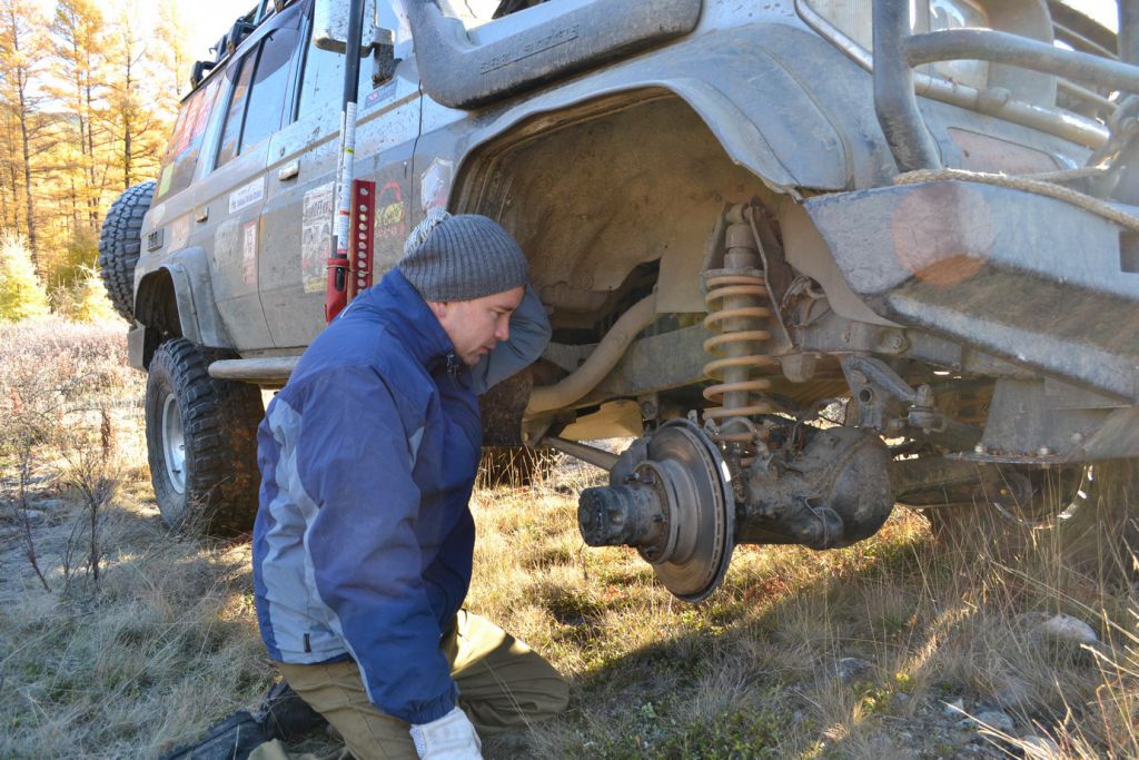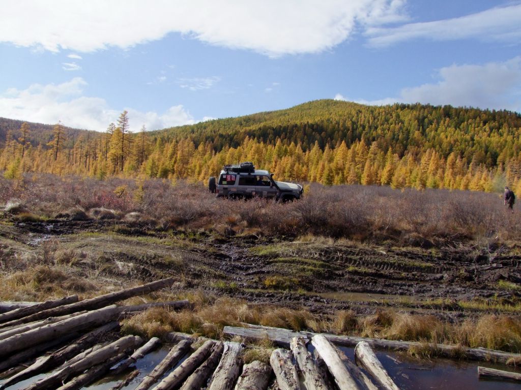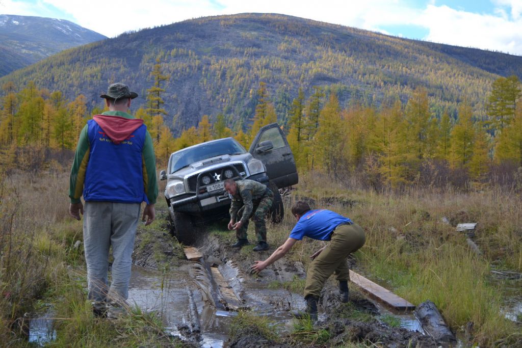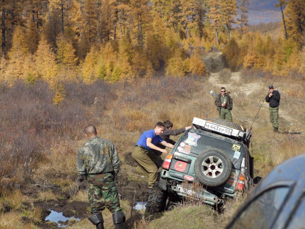 На второй день проснувшись очень рано первым делом залез в горячую ванну пока народ не набежал и расслабился. После такого отдыха никуда дальше ехать не хочет, а вылезать из воды тем более. Но сердечко оно одно и поэтому 15 минут прогревания и на выход. Все как обычно дрыхнут. Поэтому пинаю балду. Помаленьку народ просыпается и выползает из домиков на улицу. Начинается неспешная подготовка к преодолению бродов и всяких говномесных мест. Шмурдяк выбрасывается из машин на улицу. Народ местный толпится, для них это хоть какое-то развлечение.