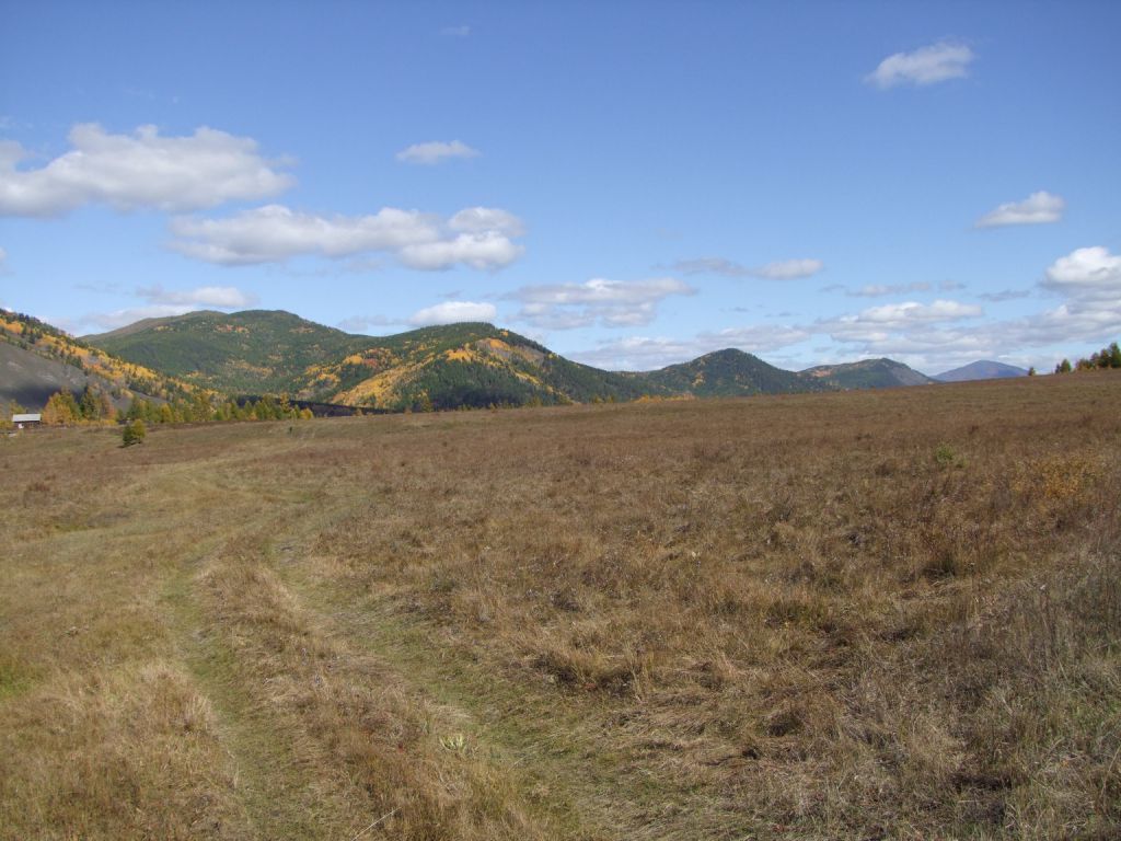 Дорога уходила в даль то спускалась то поднималась, петляя между гор. Так незаметно мы оказались в долине зажатой между гор с бесконечными полями под пастбища и отарой посредине