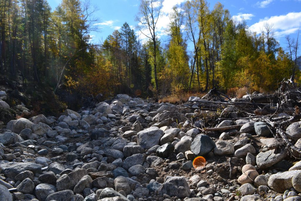 Больше приключений до второго брода мы не словили. Потихоньку добрались до Баргузина и дружною толпою выехали на каменистый берег. Толстый тут явно не скучал. Метнулся по бережку и наловил рыбки на жарешку и посолку. Остановка на левом берегу была не долгой. Я на всякий пожарный проверил наличие или отсутствие воды в мостах. И упаковавшись перебираемся на правый берег. Я замыкаю и не видя кто где ехал напоролся днищем на солидный камень По тихой сдаю назад и выбираюсь на берег объезжая преграду.