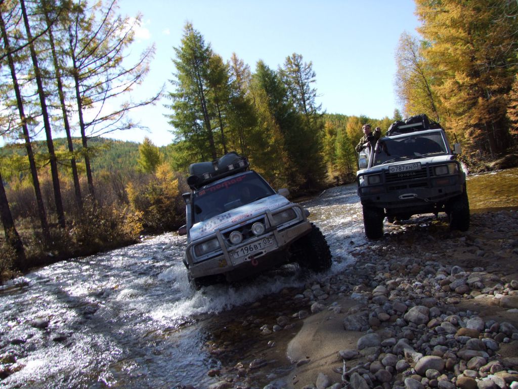 На второй день проснувшись очень рано первым делом залез в горячую ванну пока народ не набежал и расслабился. После такого отдыха никуда дальше ехать не хочет, а вылезать из воды тем более. Но сердечко оно одно и поэтому 15 минут прогревания и на выход. Все как обычно дрыхнут. Поэтому пинаю балду. Помаленьку народ просыпается и выползает из домиков на улицу. Начинается неспешная подготовка к преодолению бродов и всяких говномесных мест. Шмурдяк выбрасывается из машин на улицу. Народ местный толпится, для них это хоть какое-то развлечение.