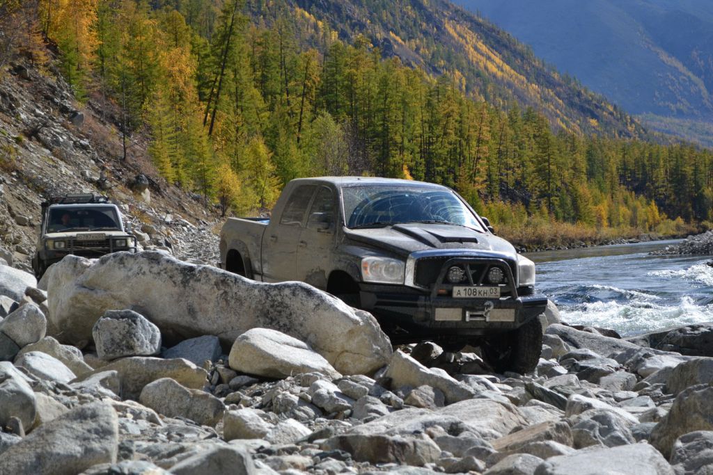 В эфире снова какая та котовасия. Толстый наткнулся на одиноко передвигающеюся машины мирно забегемотившеюся на дороге. В первом приближении ему даже не удалось определить марку машины. Только и услышали, что масса машины-бегемота как раз по мне и что она с кузовком. Издевок и юмора было много. Доберемся разберемся что к чему там. Нас то много. Выдернем. Веселимся и едем. Добираемся до точки где Толстый словил бегемота и млин млинский стоит корыто размеров с локомотив. По началу подумали, что тундра. Но чем ближе тем веселье становилось меньше. В кустах притаился всем бегемотам бегемот. Додж Рэм. Магента рисанулся и вытянул его в одну каску, пусть завидует что его малыш дернул. Все пошли пялятся на это чудо. Колесья гдето на 37с литьем на 20. Весь в обвесах сделанных на заказ. Это корытце прошло не слабый тюнинг.