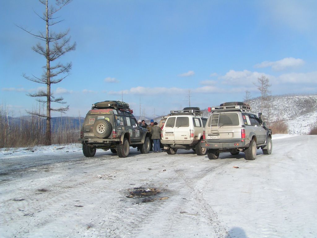 До отворота на Ирокинду крадемся медленно, заглядываем за повороты – навстречу в любой момент в лоб могут вылететь Урал или уазик. На одном из поворотов уазик все-таки появляется. Встреча на Эльбе (то есть Тулдуни)