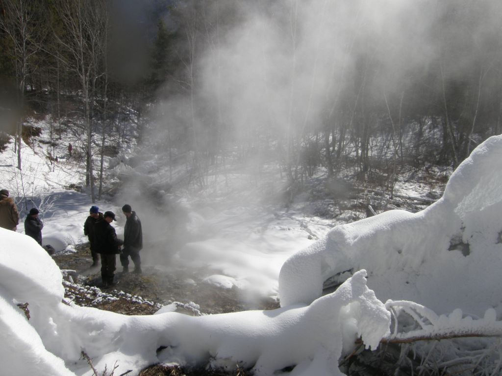 Ночь есть ночь… беру на себя роль Сусанина, кружимся по долине Могоя, наконец находим нужный отворот. Подъезжаем к источнику. Дом на месте, источники парят. Возле дома стоит датсун с читинскими номерами. Вламываемся в дом, будим хозяев. Мужик с женой и то ли тещей толи матерью. Половина участников нашла в себе силы принять обжигающе горячую ванну.