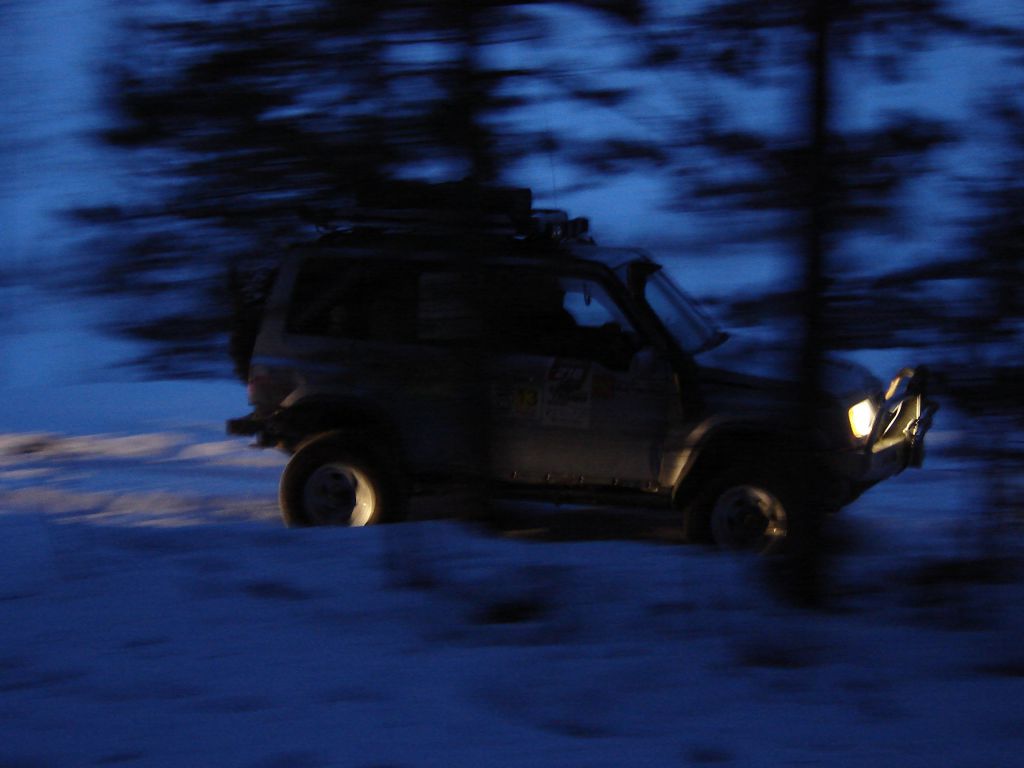 Темнеет. Сам поселок проходим ночью. Начинается вполне сносная грунтовка.