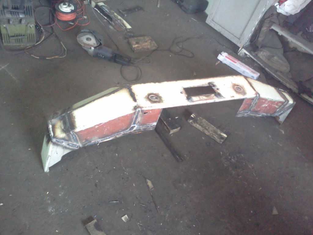 дальше прикинул как буду крепить будущий бампер, и так как заготовка была короткая с двух сторон приварил необходимую длину (по швам видно)