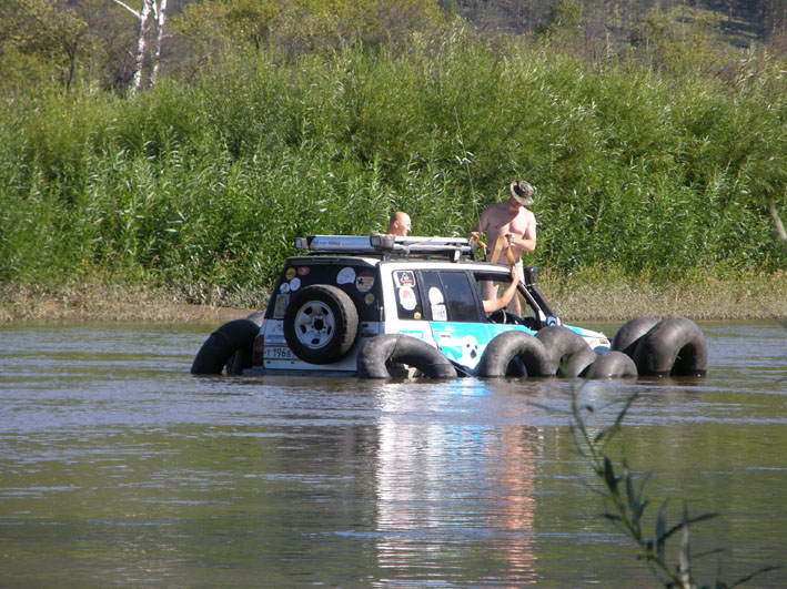 Как себя ведет "концепция", нет склонности к переворачиванию? Во сколько обошелся комплект камер на Сафаря? Движение по воде осуществляется  за счет вращения колес?